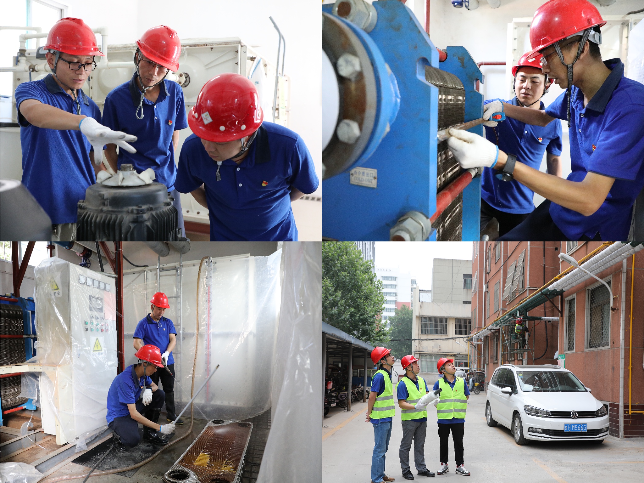 二、開展專項技改檢修為高質量供熱夯基壘臺。四和公司根據往年采暖期供熱運行的情況,認真分析研討,由黨員技術骨干牽頭成立了“冬病夏治”專項檢修小組,落實2021年度非采暖期供熱檢修方案,對供熱管網、換熱站及附屬設施進行全面安全隱患大排查,發(fā)現問題及時處理,廣大黨員干部以身作則、率先垂范,沖鋒在技改檢修的第一線。目前,已完成80余座換熱站以及2000多米二次網的保溫修復工作;更換銹蝕嚴重的樓前閥門160個;完成板式換熱器、濾網、除污器清理工作50多處;管網消缺30余處;更換存在安全隱患的配電設施8處,完成20多座小區(qū)11800余戶的濾網清理工作。