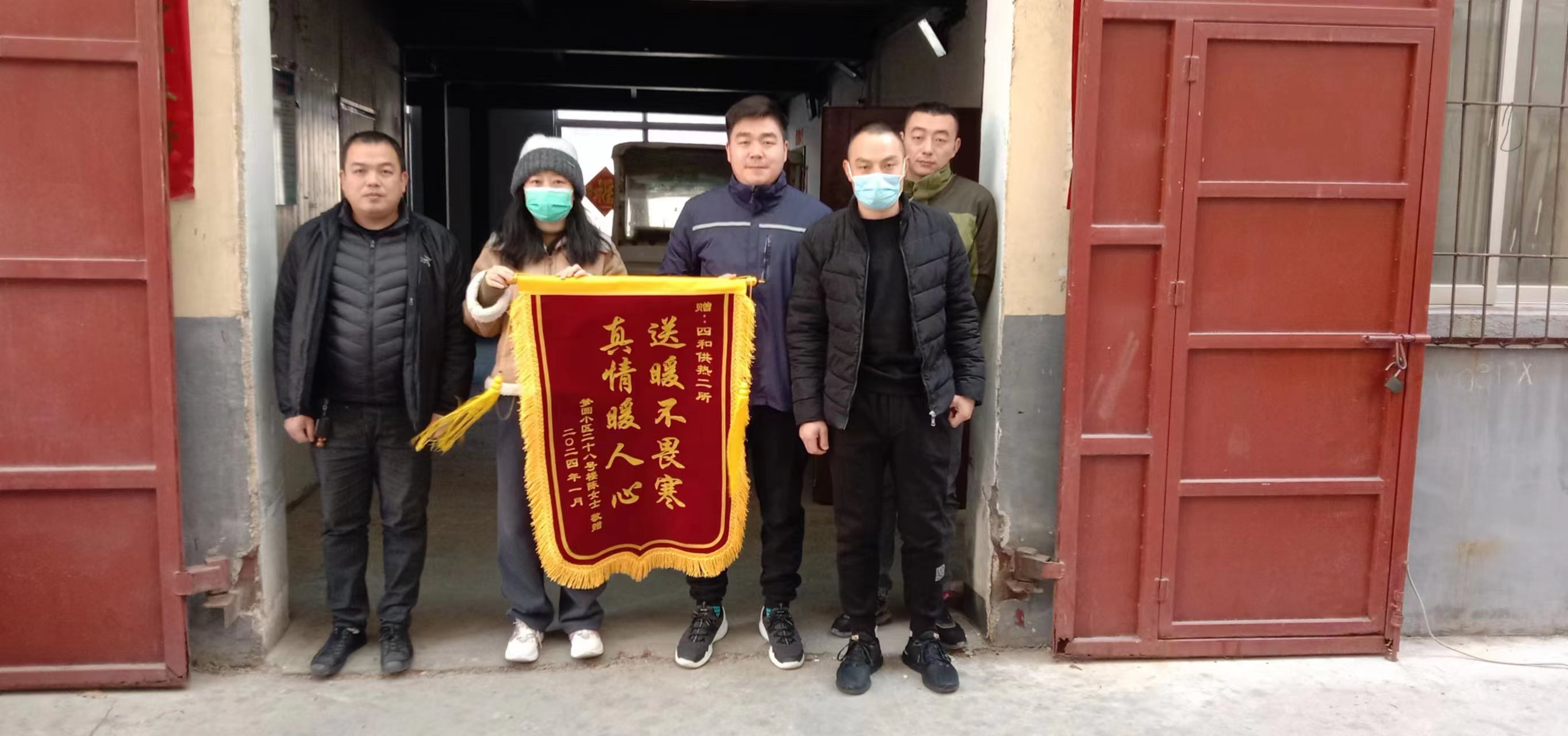 1月6日,夢(mèng)圓小區(qū)18號(hào)樓業(yè)主將一面印有“送暖不畏寒 真情暖人心”的大紅錦旗送到濟(jì)寧四和供熱有限公司供熱管理二所工作人員手中,衷心地感謝四和供熱公司心系群眾,服務(wù)人民,以高效熱情的供熱服務(wù)為用戶(hù)排憂(yōu)解難,解決供暖難題。